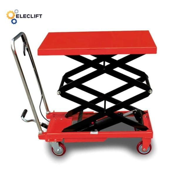 This scissor lift trolley is a small hydraulic lift, it is also an electric hydraulic lift table. It provides overload protection and one-year warranty. The lifting height is 2000mm, and load capacity is 1000kg.